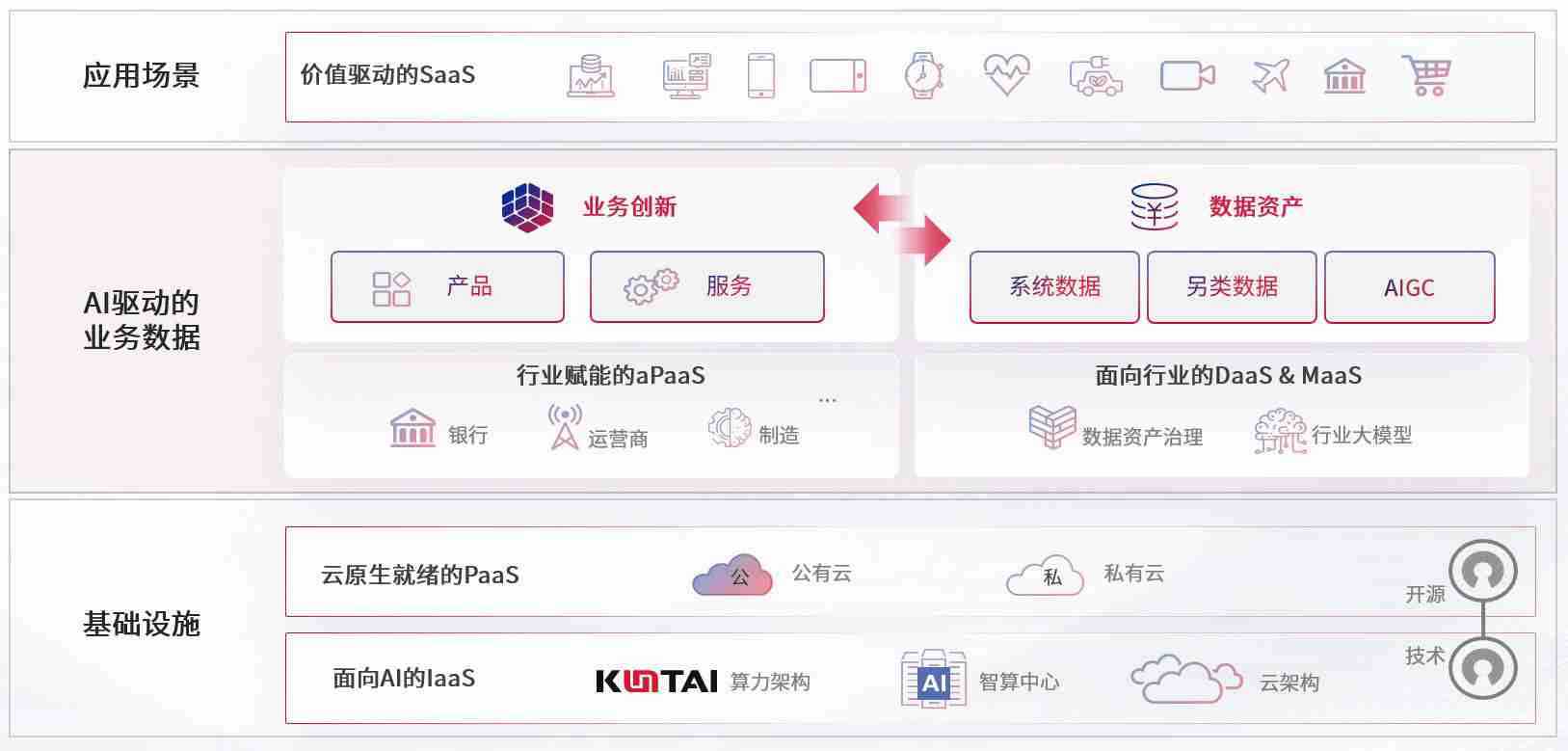 数字时代,,围绕企业数字化转型的关键要素,,,,快盈VIII数码开创性的提出数云融合战略和技术体系框架,,,,着力在云原生、、数字原生、、、AI原生和信创产业上架构产品和服务能力,,为处在不同数字化转型阶段的快消零售、、、、汽车、、金融、、、医疗、、、政企、、、教育、、运营商等行业客户提供泛在的敏捷IT能力和融合的数据驱动能力,,,,构建跨界融合创新的数字业务场景和新业务模式,,,,助力企业级客户建立面向未来的核心能力和竞争优势,,,,全面推动社会的数字化、、、智能化转型升级。。。。